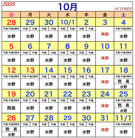 ■今月の休診日は 10月【3・10・17・24・31日 】です。