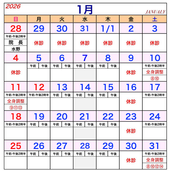 ■この表は《全身調整・インソール》の予約可能日を表しています。